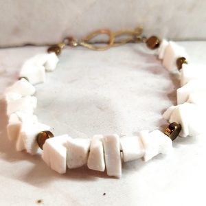 coral polished braceletΠέτρα: ακατέργαστο λευκό κοράλλι με χρυσό αιματίτη