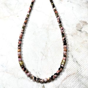Κολιέ φυσικές πέτρες Ροδονίτη (Rhodonite stone necklace)