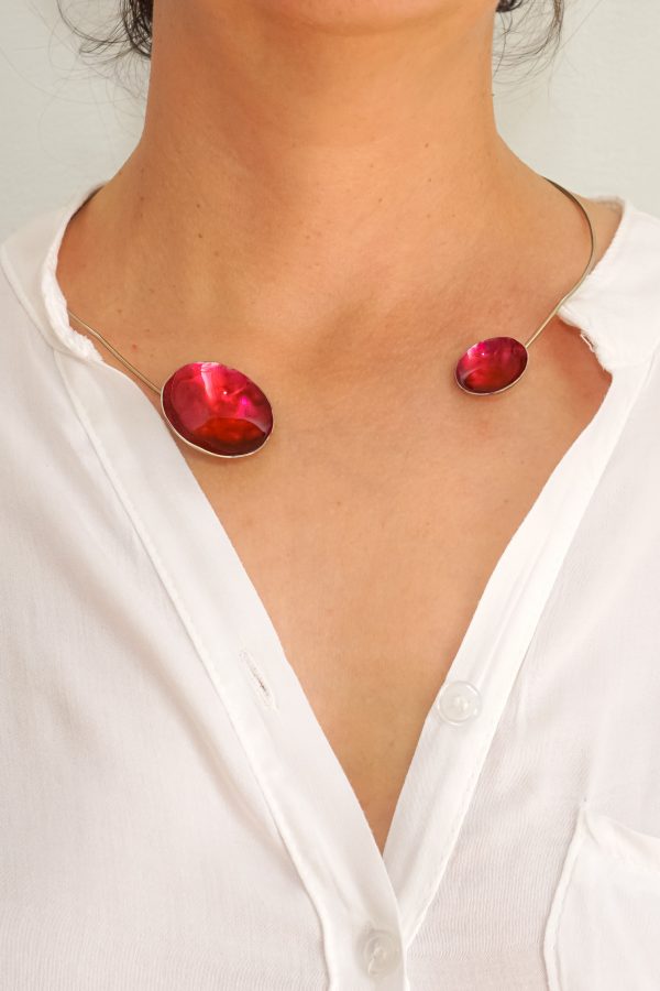 Χειροποίητο κολιέ της συλλογής chroma ,φτιαγμένο από αλπακά με ημισφαίρια επισμαλτωμένα