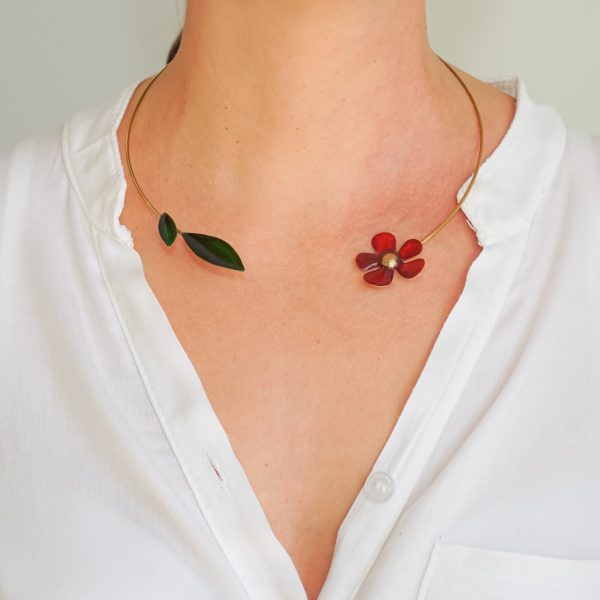 Κολιέ κόκκινο λουλούδι Red flower necklace